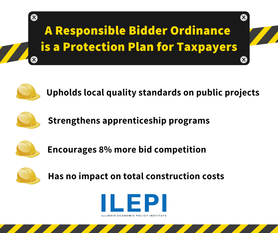 La Grange: An Illinois Economic Policy Institute (ILEPI) study of more than 1,200 public works projects in Illinois and Indiana finds that local responsible bidder ordinances (RBOs) boost bid competition by 8% and strengthen apprenticeship programs, without increasing public construction costs.