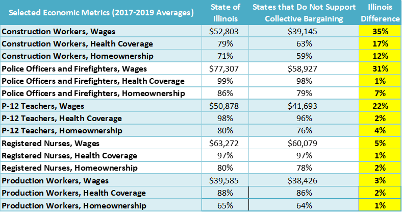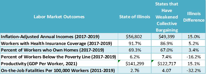 La Grange, IL: Illinois workers earn higher wages, deliver higher levels of productivity, are more likely to have health insurance, and are substantially less likely to suffer workplace fatalities than comparable workers in states that have taken policy actions to weaken unions and erode collective bargaining rights, according to a new study from the nonpartisan Illinois Economic Policy Institute (ILEPI) and the Project for Middle Class Renewal (PMCR) at the University of Illinois at Urbana-Champaign. The research comes as Illinois voters are set to weigh in on the Workers’ Rights Amendment, a November ballot question that would enshrine the right to unionize in the Illinois Constitution and prevent passage of any state law or local ordinance “that interferes with, negates, or diminishes the right of employees to organize and bargain collectively.”
