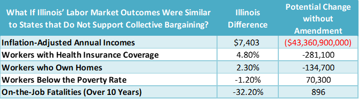 By examining additional American Community Survey, Bureau of Labor Statistics, and Bureau of Economic Analysis data, researchers were able to compare Illinois on other economic metrics to states that have weakened collective bargaining rights—and to assess the potential impact of the Workers’ Rights Amendment on additional variables ranging from workplace safety to rates of homeownership.