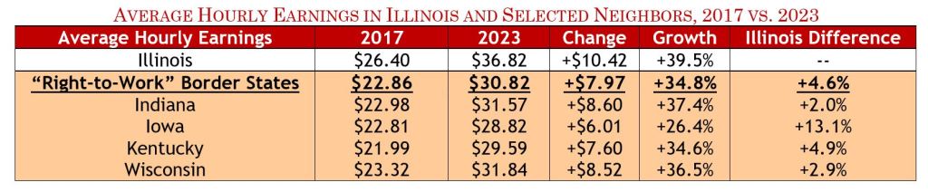 At 13%, Illinois currently has the nation’s 13th-highest unionization rate, with its workers 3 percentage points more likely to be union members than the nation as a whole. Black workers, military veterans, workers with master’s degrees, public sector employees, and construction trades workers continue to be the groups who are most likely to be unionized. Unions also boost worker earnings by an average of 13% in Illinois, which is the 3rd-highest impact in the nation. Finally, the report found that Illinois’ unionization rate was 5 percentage points higher than neighboring states with so-called “right-to-work” laws, while its worker wages had grown 5% faster since 2017 and were now an average of 19% higher.
