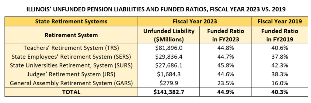 “Illinois has made important strides in its public pension system by making required contributions that had been jettisoned in prior years, offering $2 billion in buyouts to retiring employees and inactive members and making $700 million in supplemental contributions designed to reduce the system’s unfunded liabilities. It is important for the state to continue on this trajectory, which would bring the system 90% funded by 2045—well above the 80% standard used by the Government Accountability Office,” Manzo added.