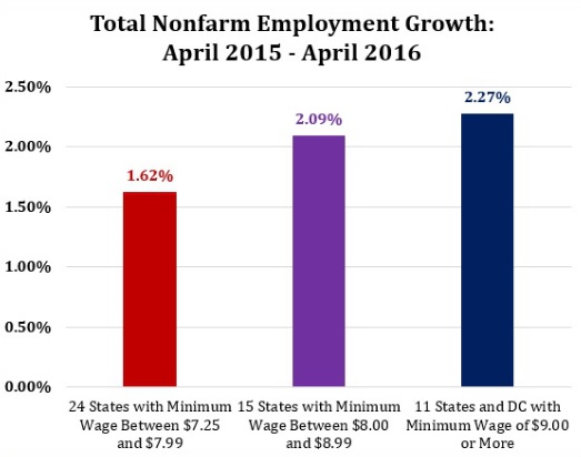 States with Higher Minimum Wages Added More Jobs Over the Past Year